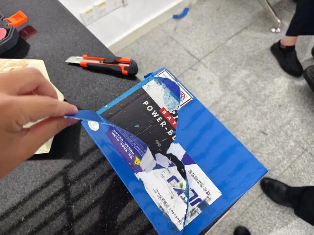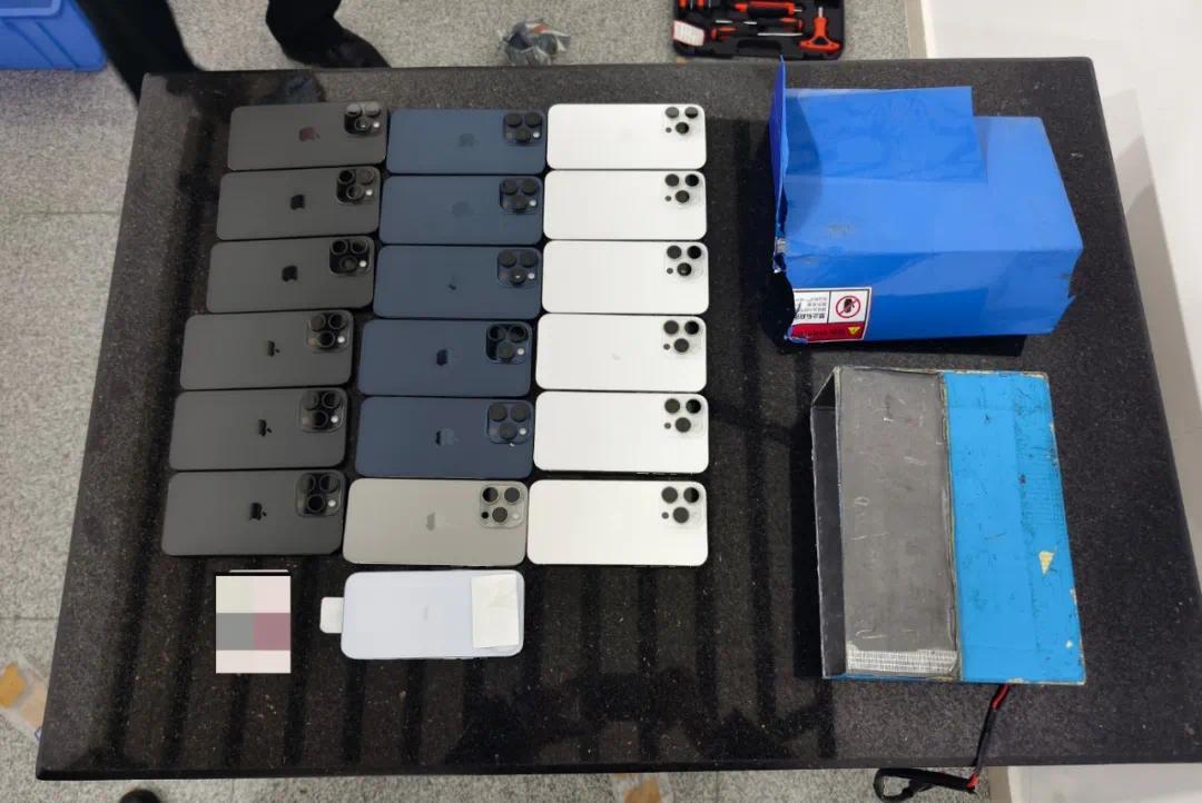 1月6日10时10分许,关员在对该男人进行查验时发现,其轮椅的电池箱外贴着一层薄薄的蓝色塑料皮,上面贴有“制止私自拆开”的提示语,疑似存在掩盖内部拆开痕迹的状况。经进一步查看,关员在电池箱内抄获19台旧手机。